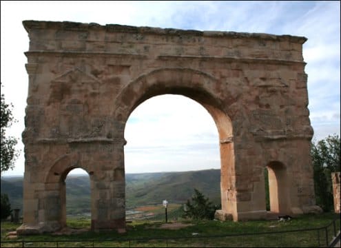 Para comenzar la visita a la villa de Medinaceli, es de cortesía, puesto que desde muy lejos nos reclama la atención, iniciar por el grandioso Arco Romano, único en España que dispone de tres arcadas, construído entre los siglos I y III para dar entrada a la ciudad y que se conserva perfectamente en su estructura, aunque en deficiente estado en sus elementos decorativos, debido a su ubicación y a su largo pasado sufriendo las duras inclemencias del tiempo que imperan en el lugar.